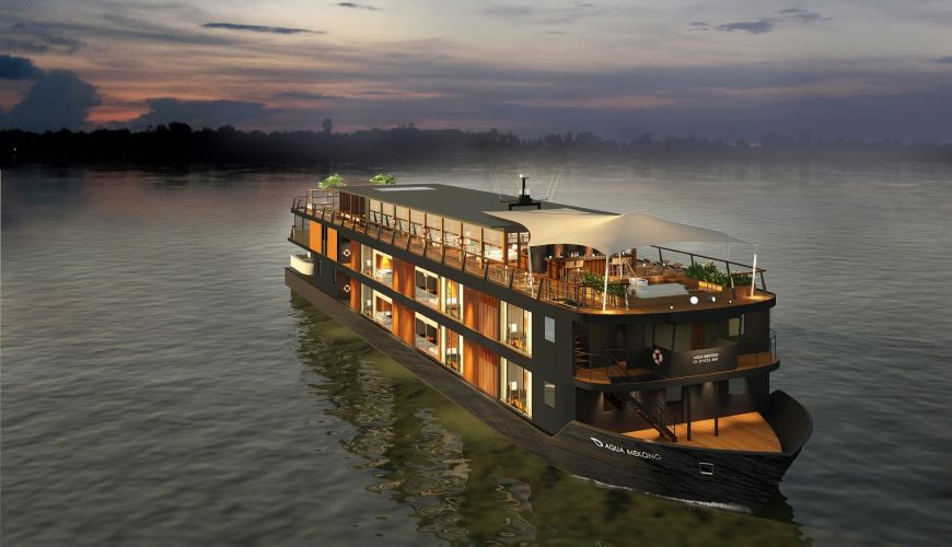 This five-star Mekong cruise ship boasts 20 spacious, well-appointed cabins featuring floor-to-ceiling windows, each sustainably crafted, beautifully decorated and air-conditioned. Cruising into the heart of Southeast Asia, between Vietnam and Cambodia, Aqua Mekong Cruise delights guests on an inspiring journey of local taste, untouched beauty of nature and people and utmost luxury experience onboard.