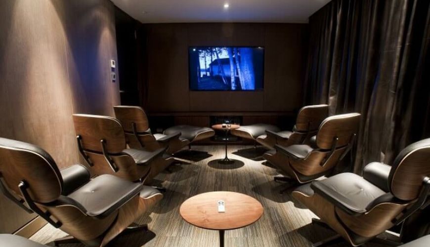 - Outdoor movie theater, library/game room, and private screening room for relaxing evenings