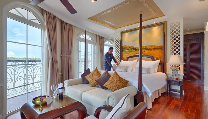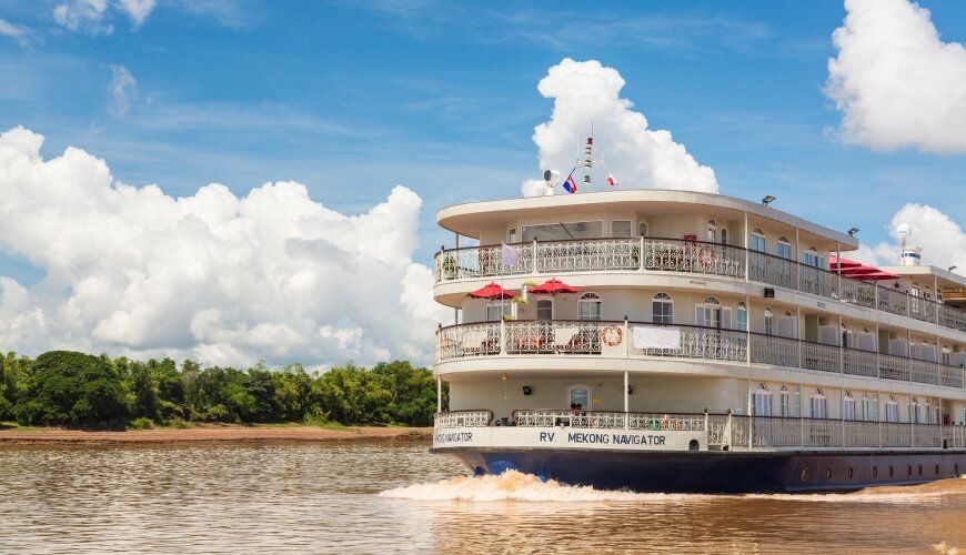 Sailing through Vietnam and Cambodia, the all-suite Mekong Navigator Cruise is designed in French Colonial style with high-end service with a 2:1 crew-to-passenger ratio. Carrying no more than 68 guests, this luxury Mekong Navigator Boat Cruise offers attentive and gracious service from meticulously trained staff.