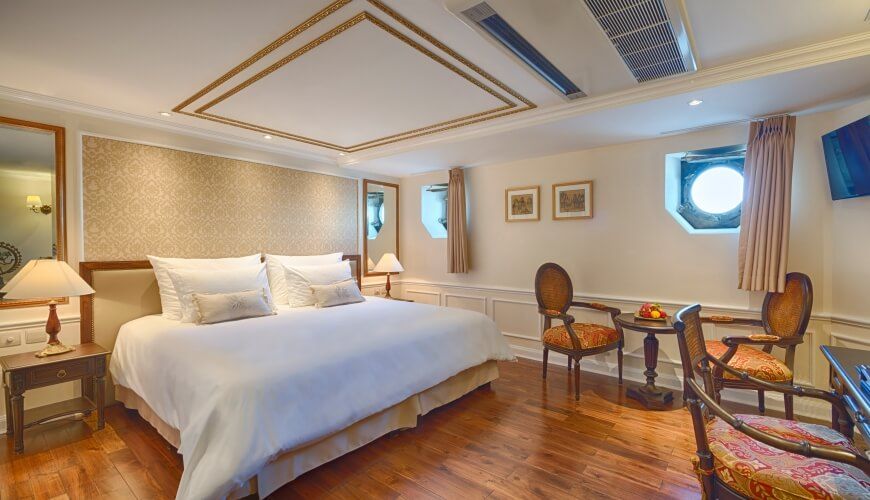 This luxury Mekong river cruise ship features a sophisticated and comfortable ambiance with a selection of 34 spacious and indulgent suites with perfect attention to every modern detail. Every suite is a beautiful and tranquil retreat which is a blend of timeless elegance and a full touch of luxury.