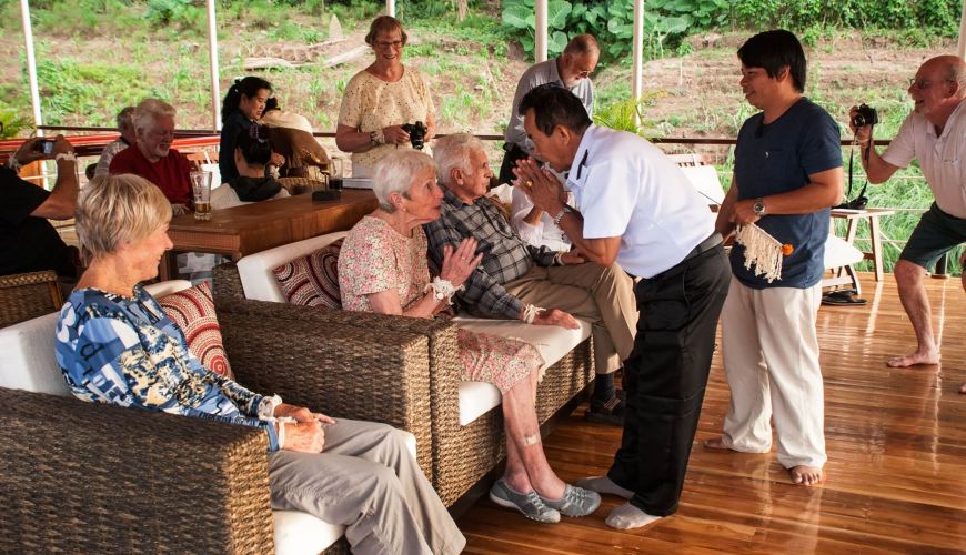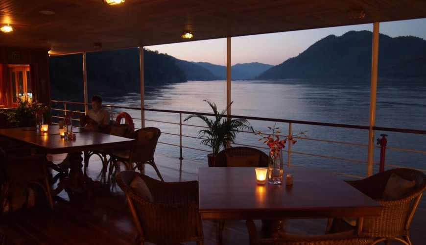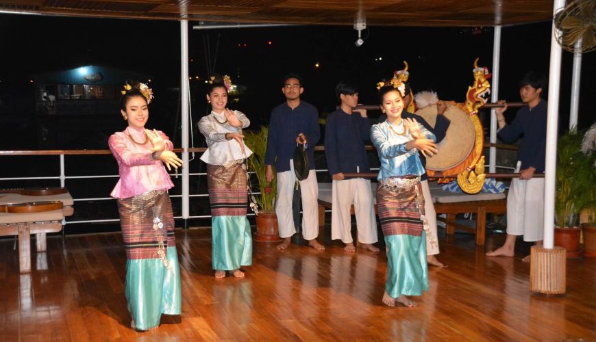 We'll have lunch at a local restaurant, then move on to Chiang Khong to get on the RV Laos Pandaw Cruise. You'll board the ship by 04:00 PM and be greeted with welcome drinks on the deck, along with traditional Thai dancing.
