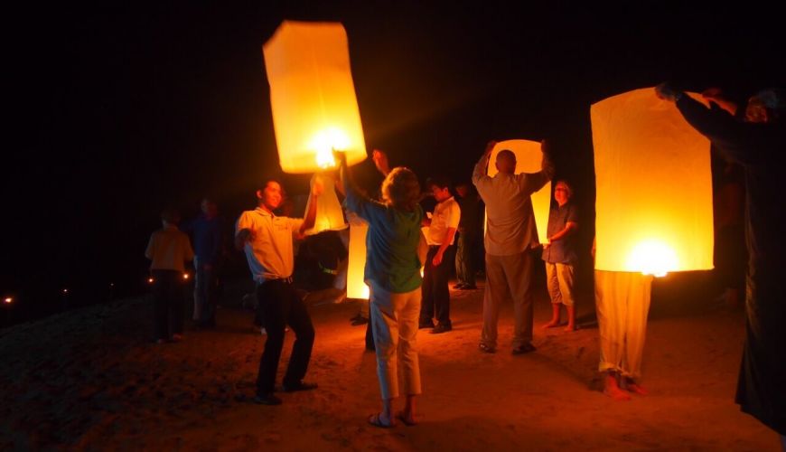 In the evening, we'll stop at a sandbank by the river for a special barbecue and cocktail party. We'll light up paper lanterns with the ship's crew and have a dance out in the quiet of the Laos countryside.