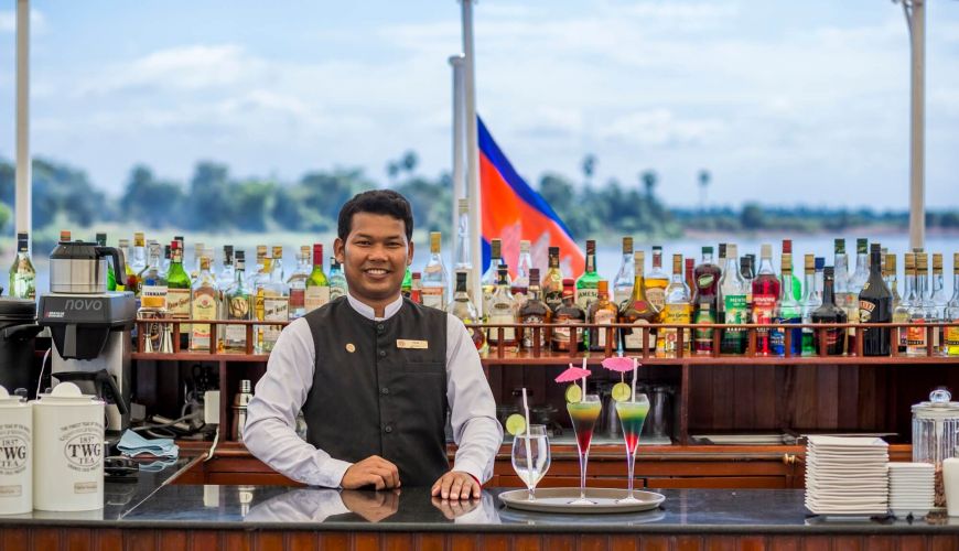 We'll stay overnight at Phnom Penh's city port, which is full of lively bars, restaurants, and nightlife.