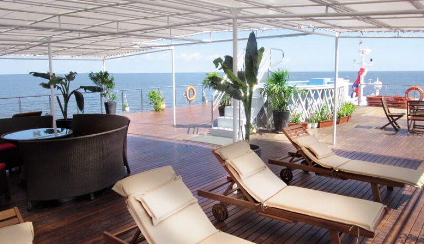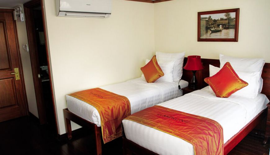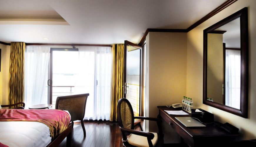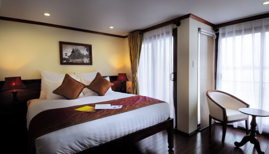 There are 14 staterooms on the Main Deck with the total area of 22 square meters each room. All the cabins are outside which are roomy and comfortable with a private balcony and large windows for great views of the river. Beds could be twin or double depending on the passengers.