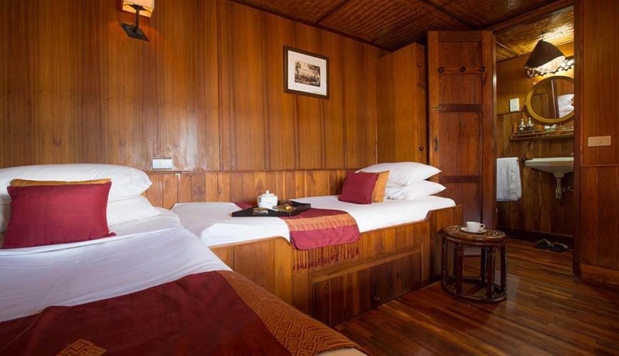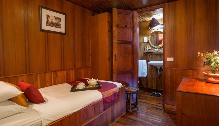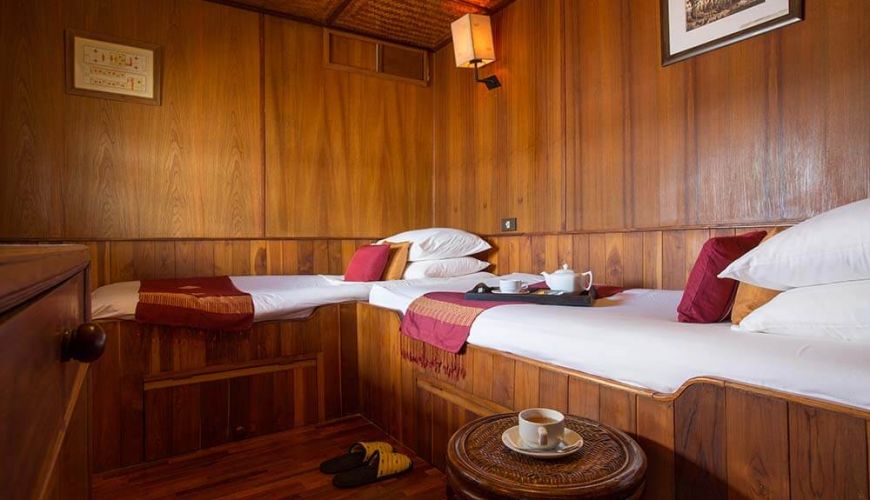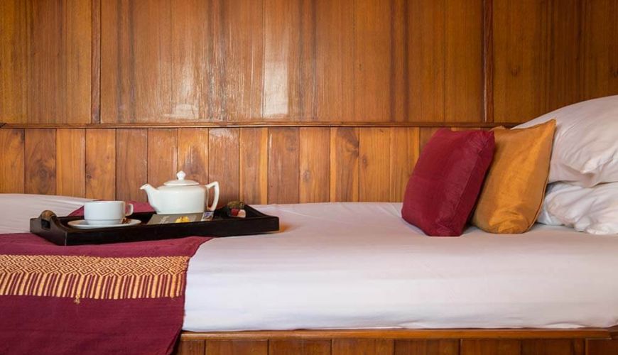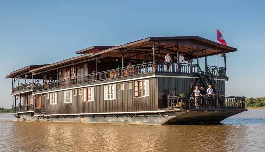 Originated as a ferry that carries teak wood between Vientiane and the south of Laos, Vat Phou Cruise is now converted into a luxury floating hotel cruising down the Mekong River from Pakse to Champasak.